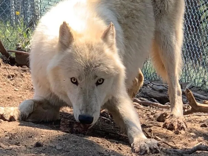 Nakai is a high content Arctic subtype wolfdog. This means he DNA tests at 85% or greater wolf content. He is very unsure of people, but will observe you from a distance. Nakai is Diné (Navajo) and means “Wanderer.” It can also mean “Mexican.” He shares an enclosure with Kaia and Kavi.