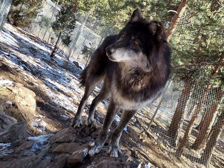 Cree is a mid content black phase wolfdog. He DNA tests at around 63% wolf content. He is very friendly and loves getting pet once he gets comfortable with you! He is one of our ambassadors in training! While he is very friendly, he can get a little anxious in new places. He has come a long way in his own journey towards trust and friendship with humans.
